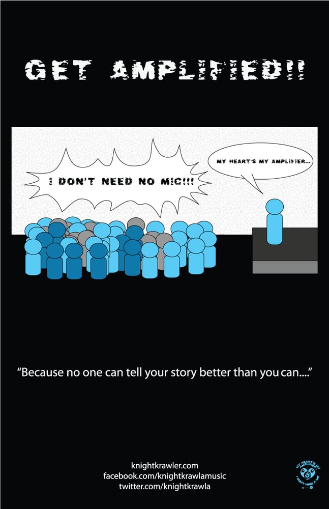 11x17 posters depicting the famous phrase, "My Heart's My Amplifier I Don't Need No Mic." Autographed by KnightKrawler. Comes in Red, Blue, Green, Purple and Pink. More colors to be added soon.